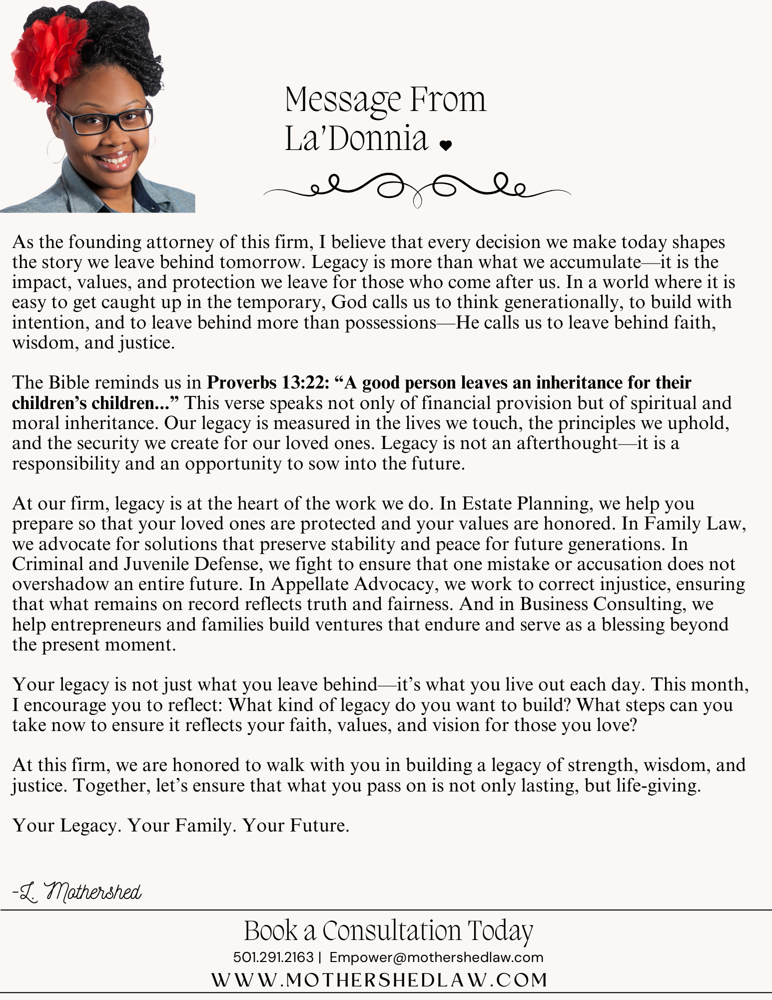 Empower State of Mind: Legacy Empower State of Mind Sep 1 Written By La'Donnia M. Mothershed Esq. La'Donnia M. Mothershed Esq. https://www.mothershedlaw.com/meet